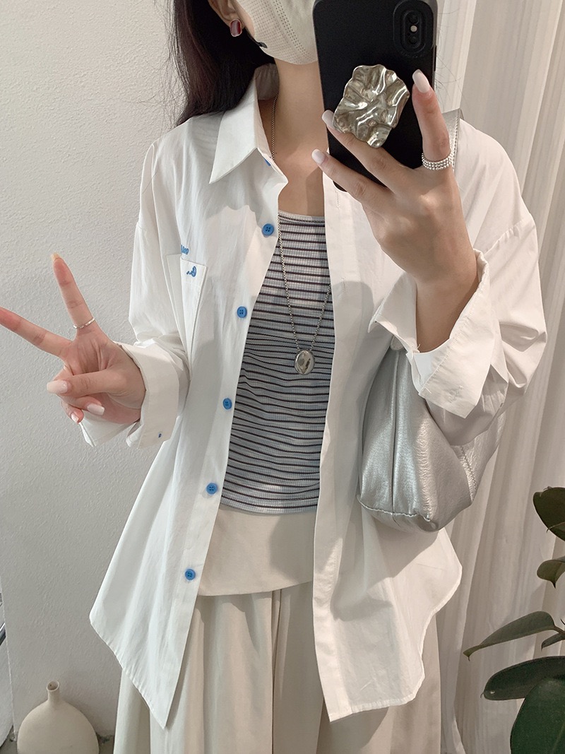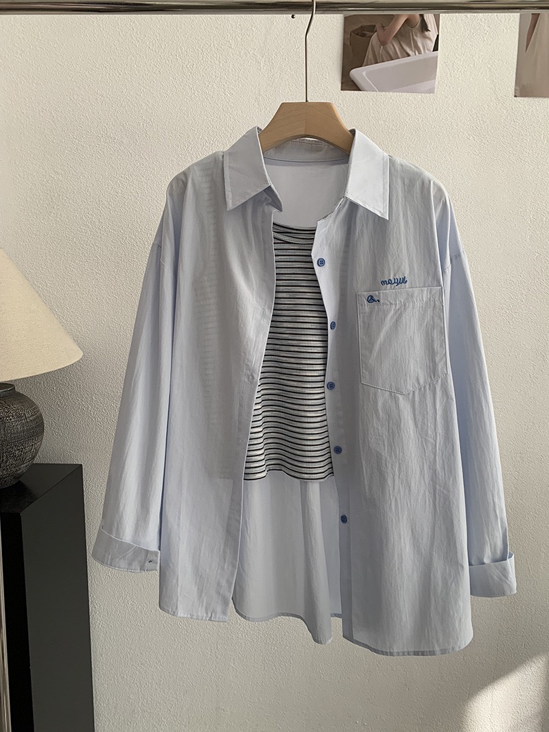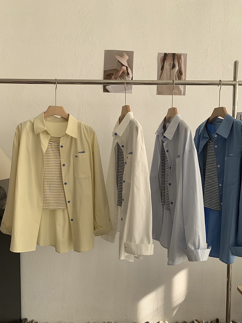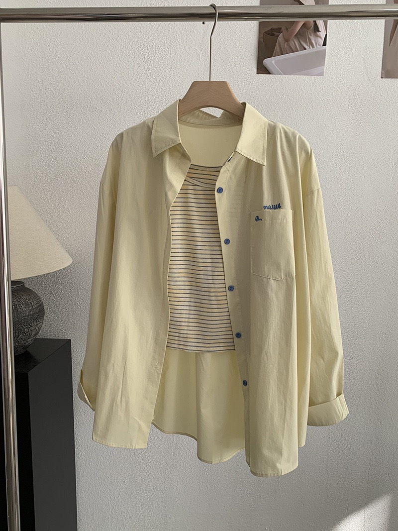 刺繡字母條紋襯衫+背心