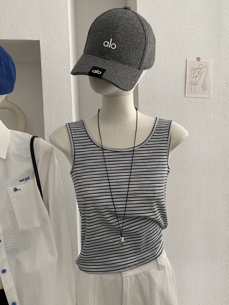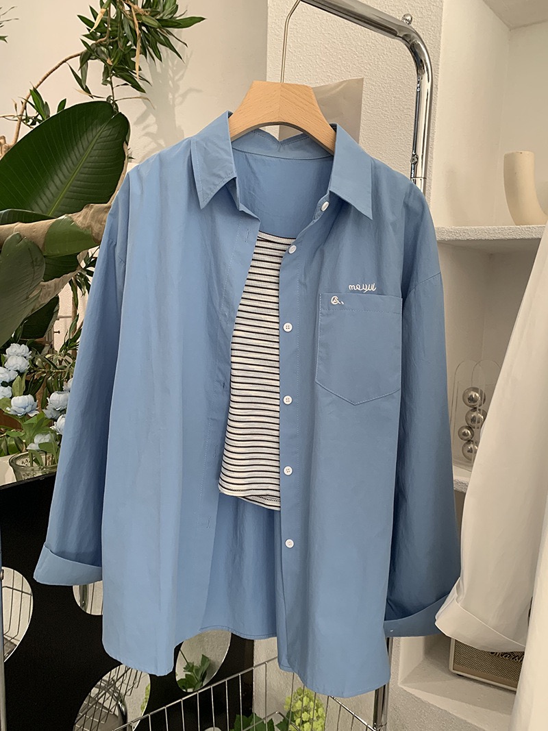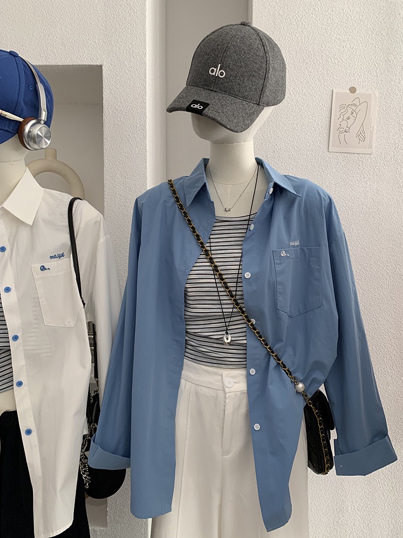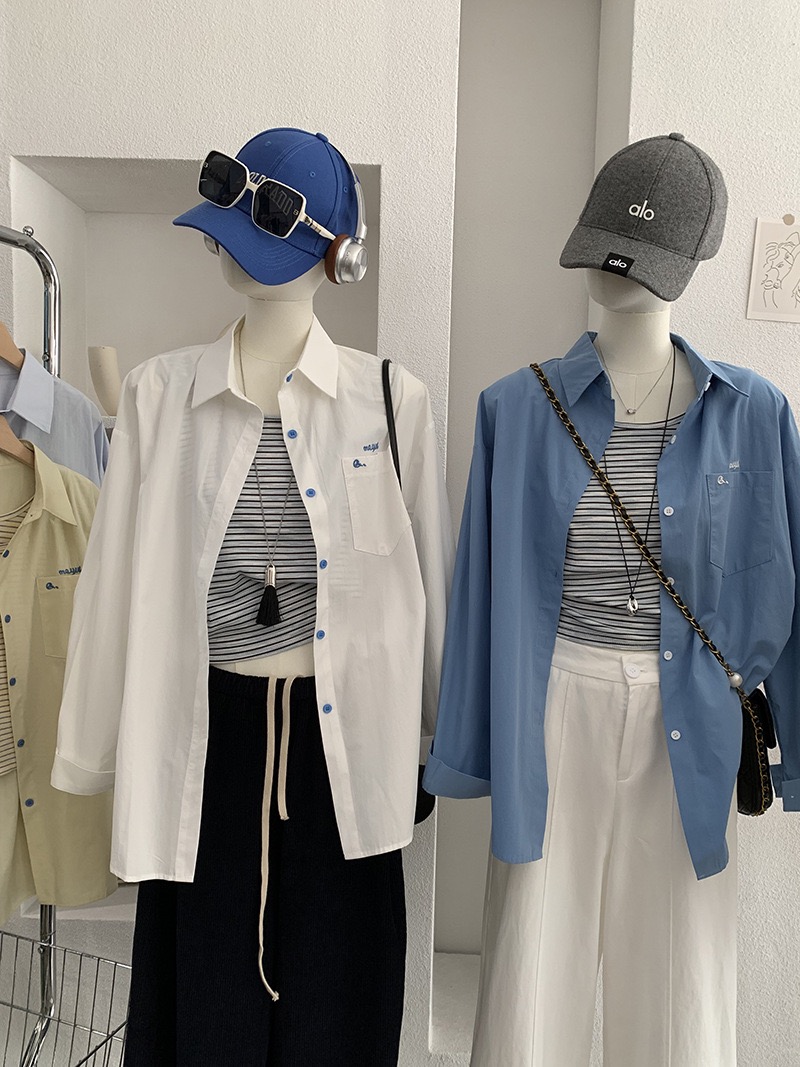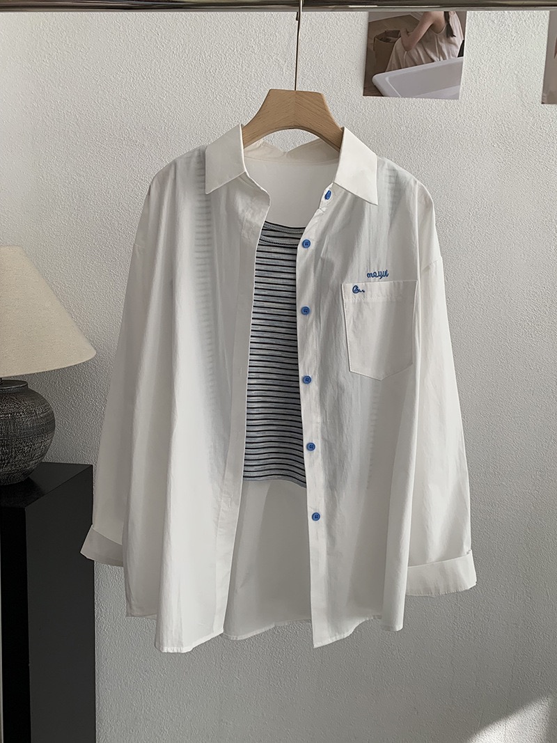 刺繡字母條紋襯衫+背心