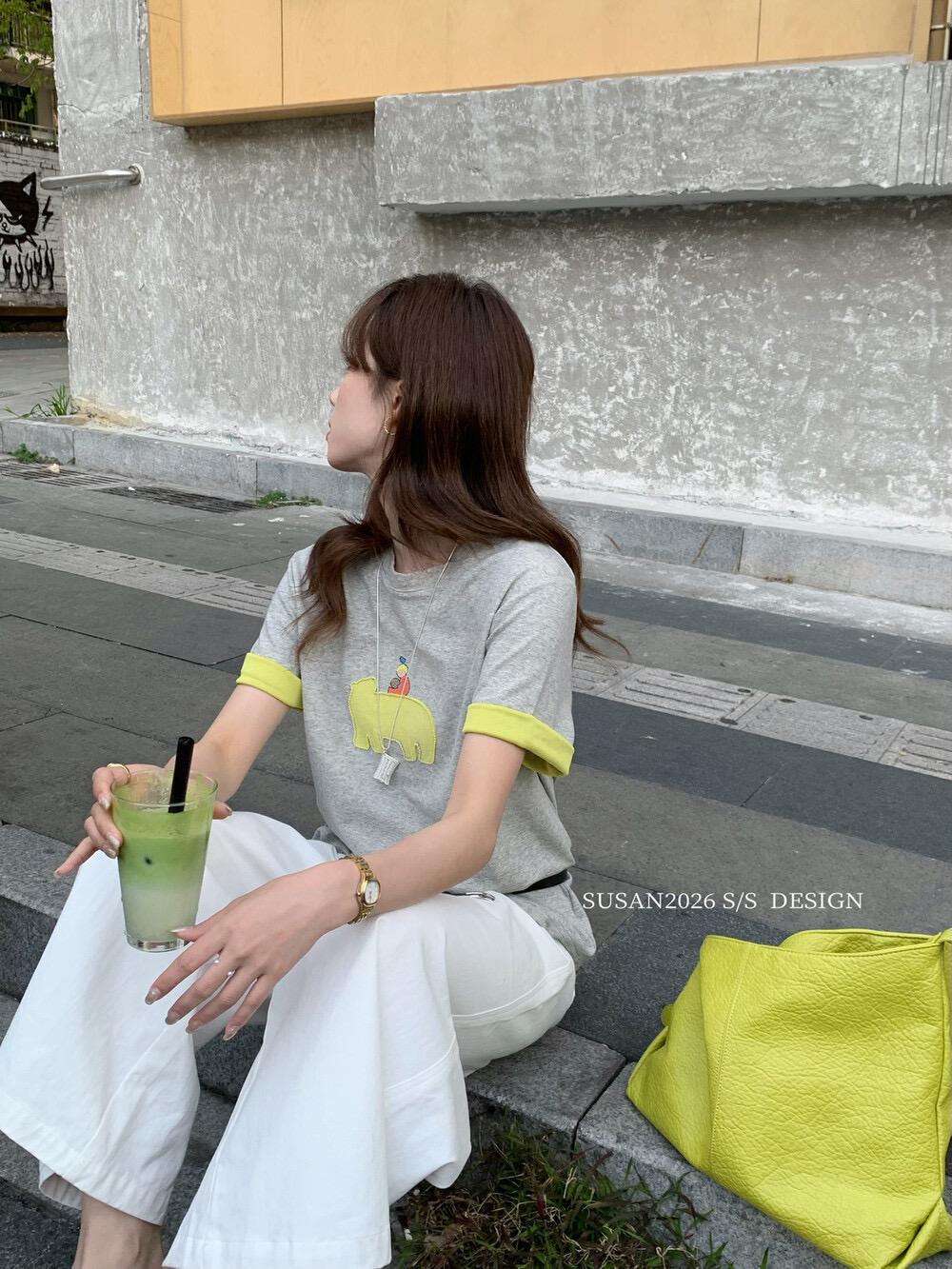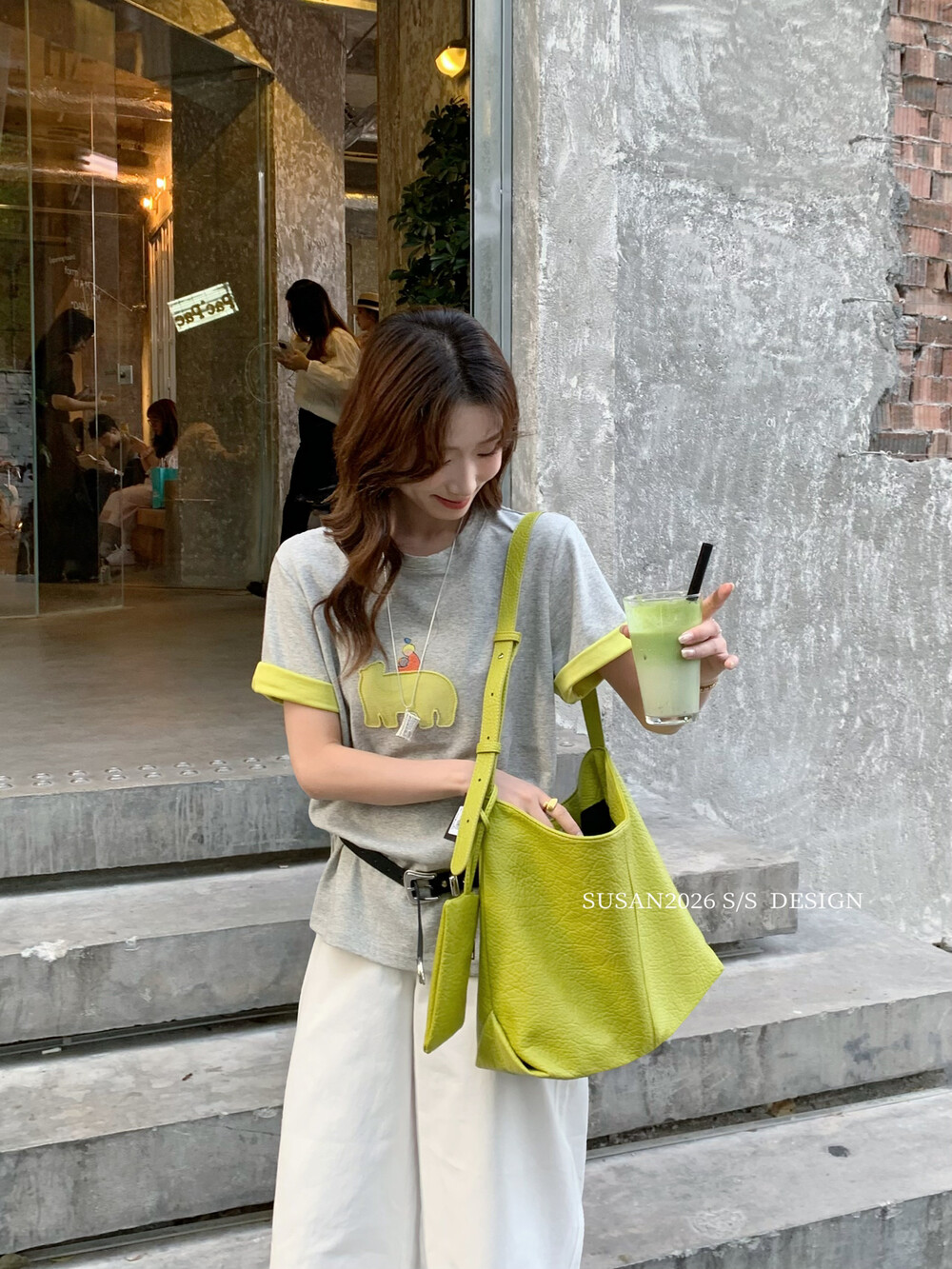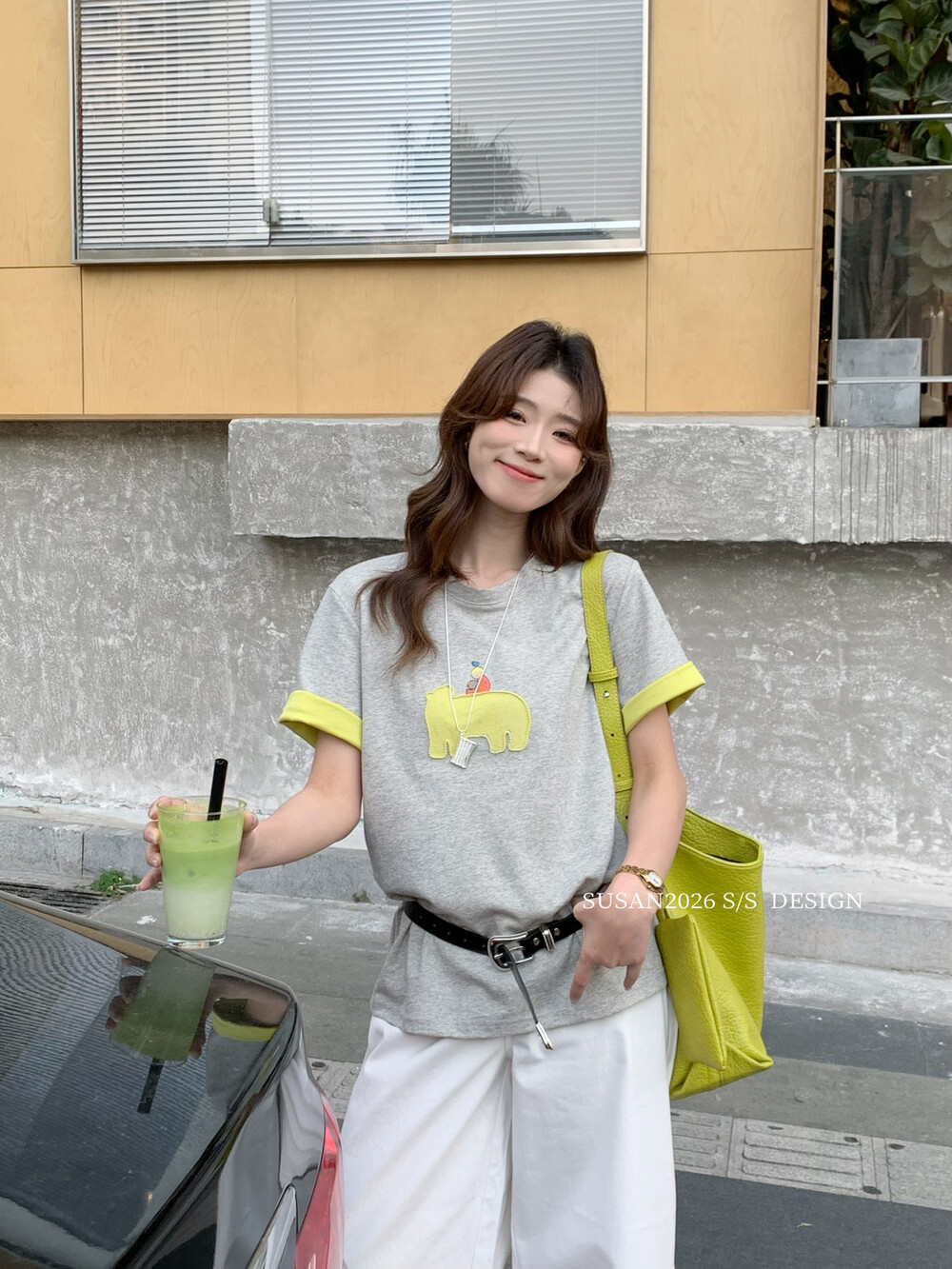 夏日撞色小熊刺繡T|清新感減齡百搭款