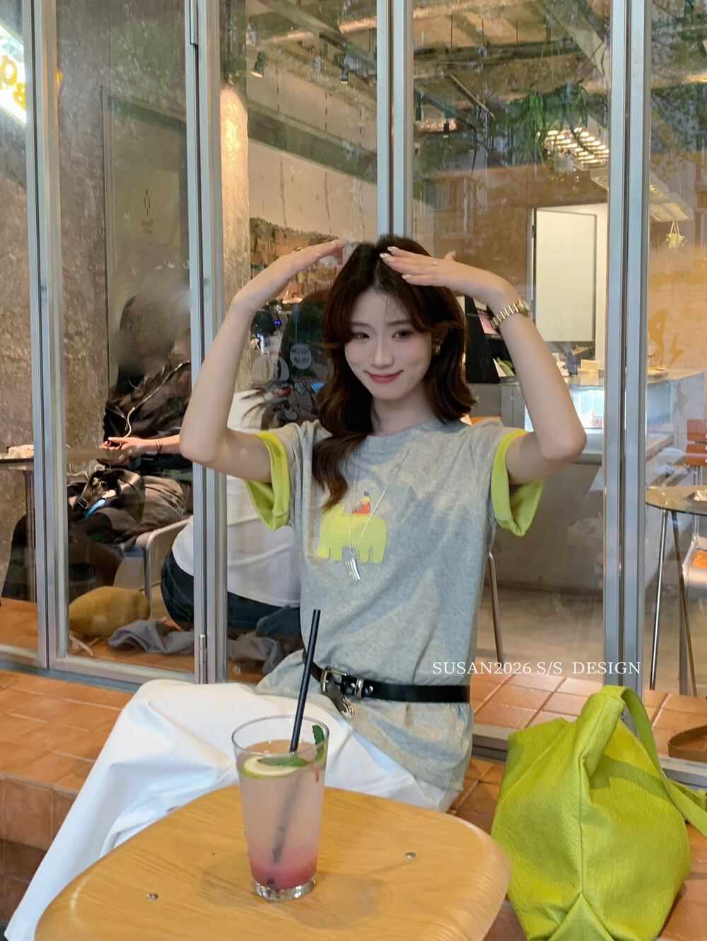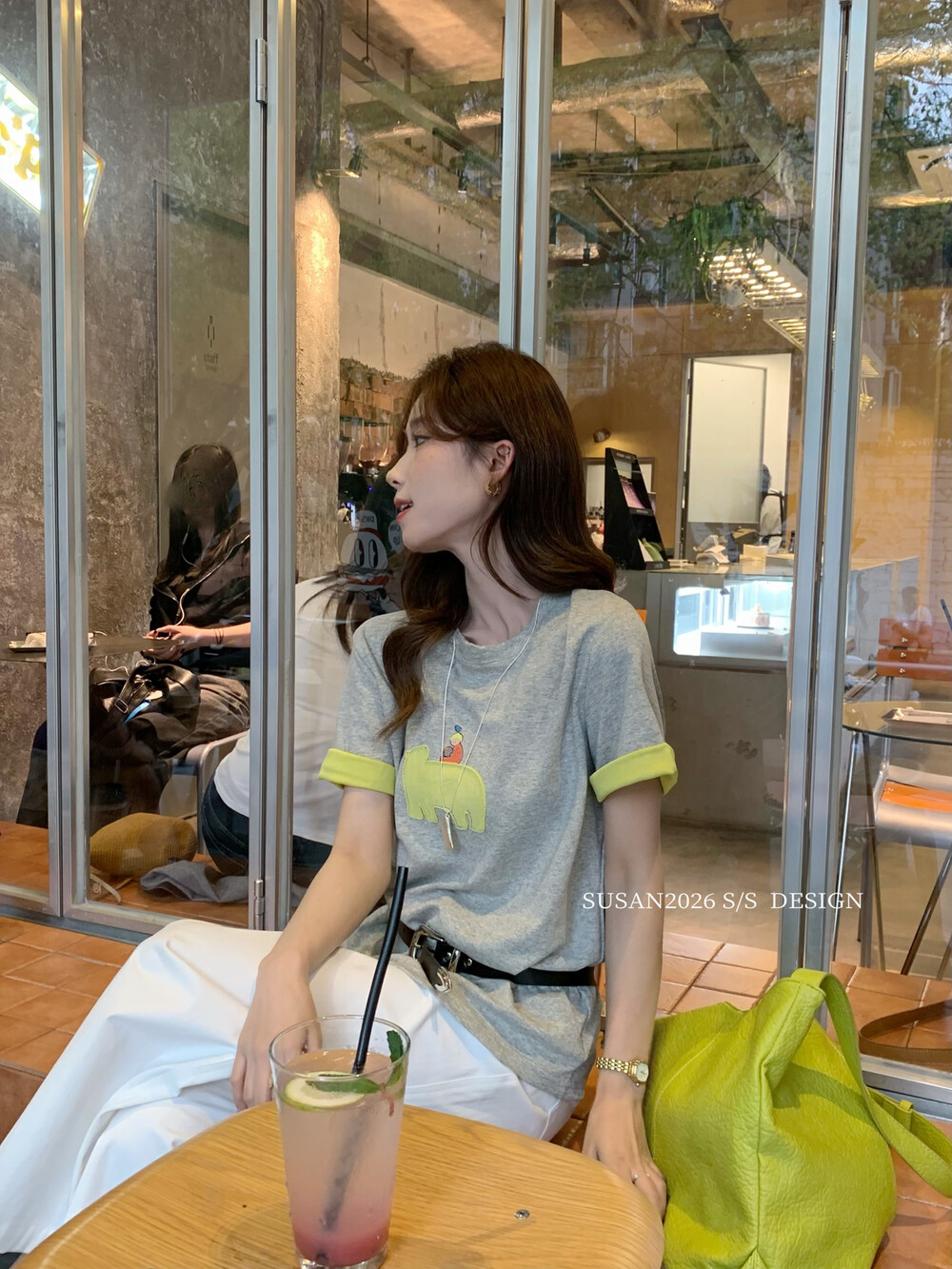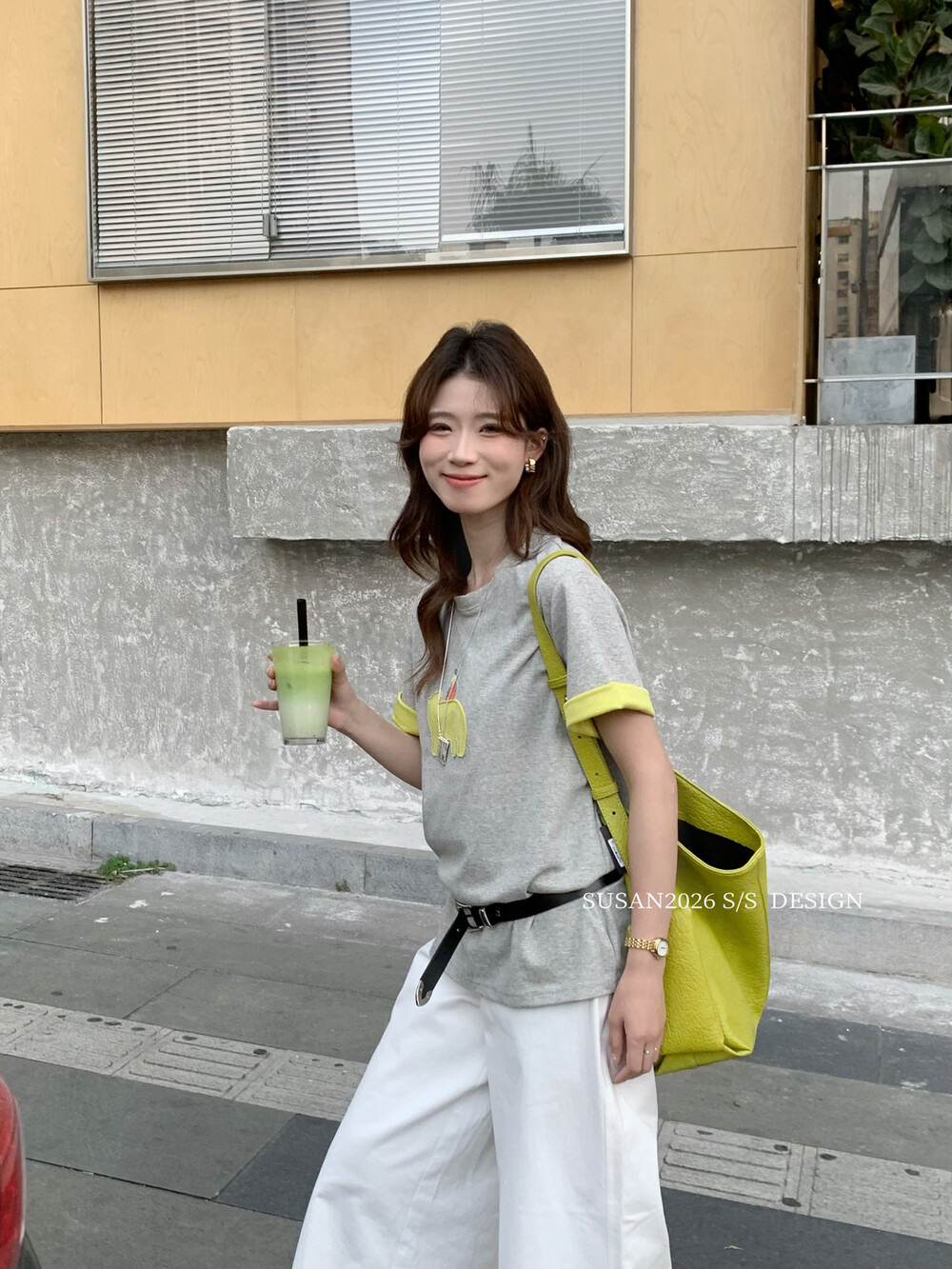 夏日撞色小熊刺繡T|清新感減齡百搭款