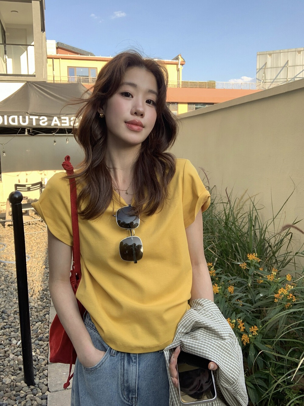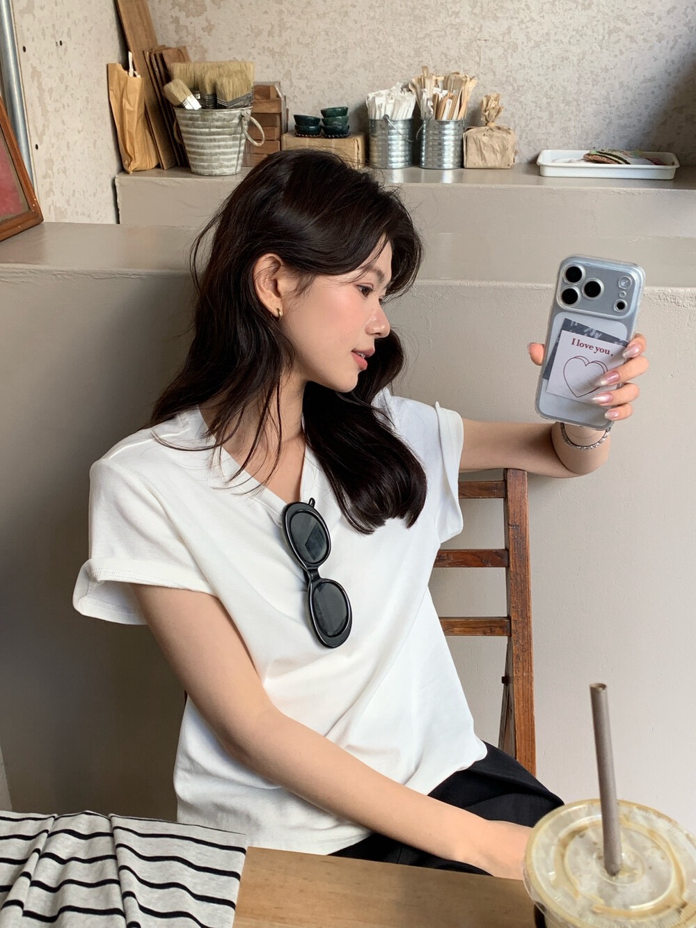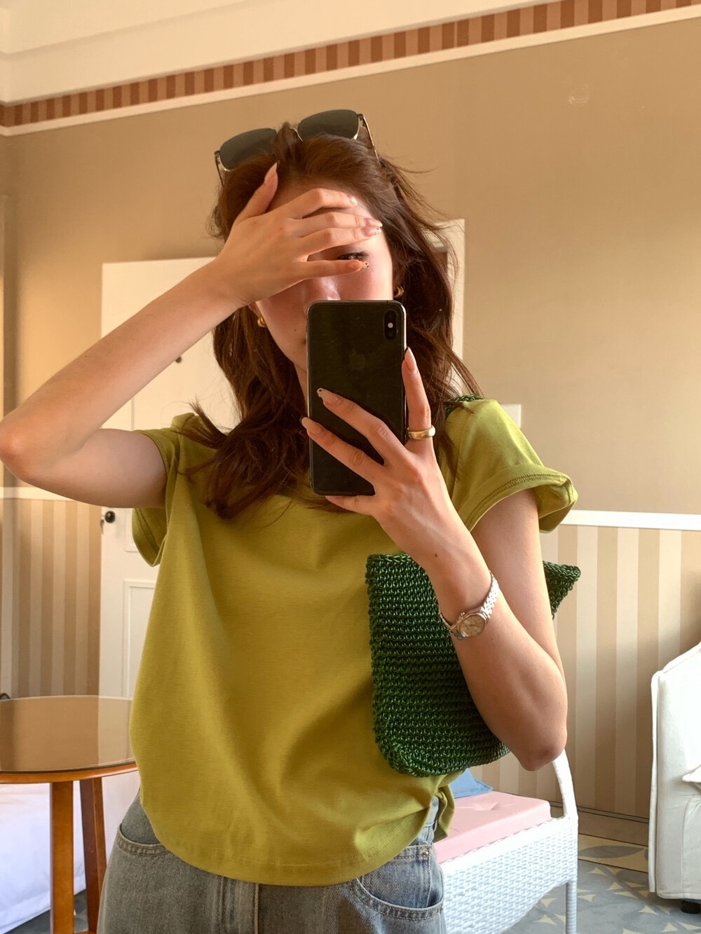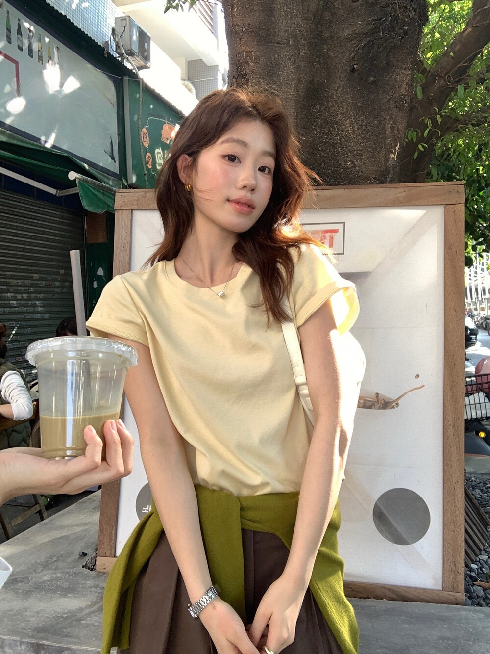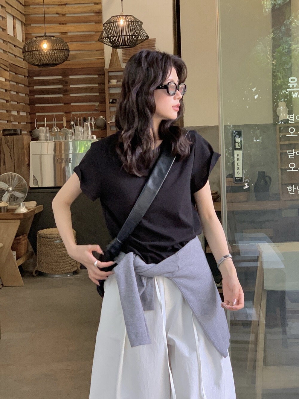 簡約圓領加上小飛袖設計,穿起來比一般短袖更俐落顯瘦。