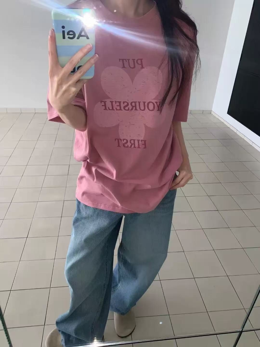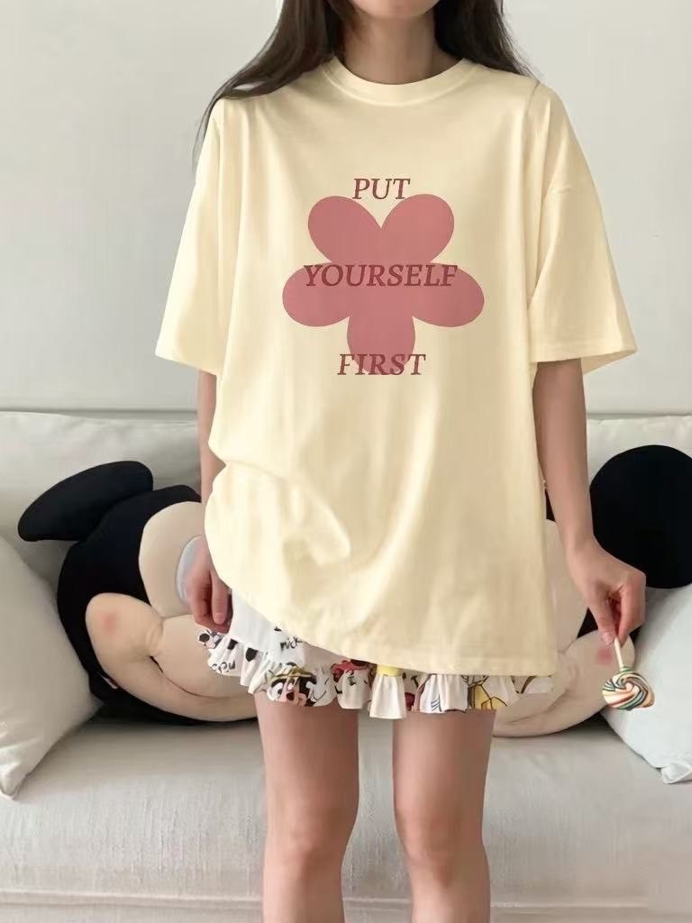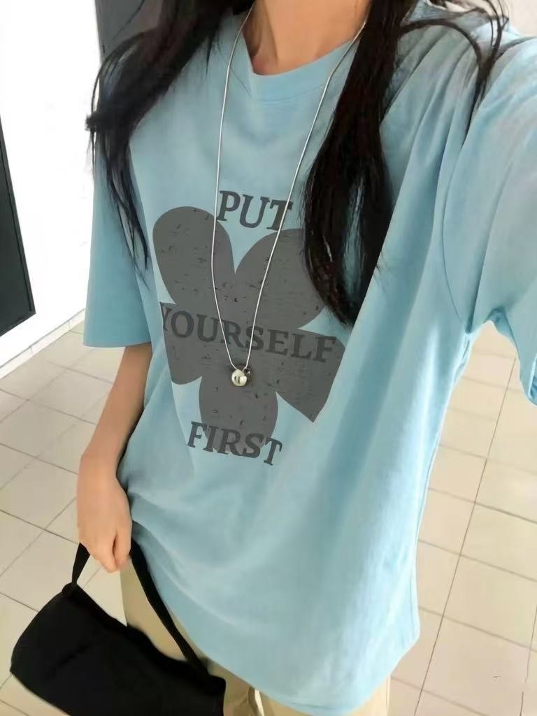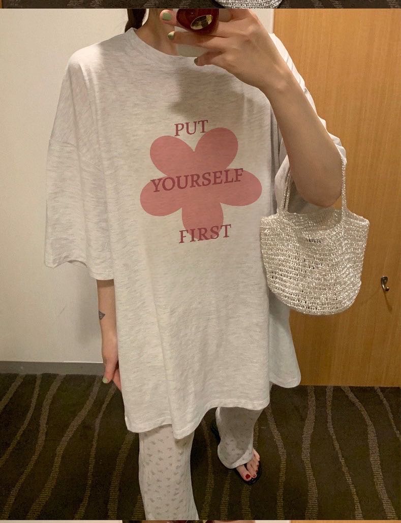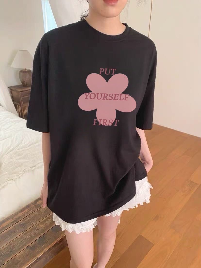 韓系花朵字母寬鬆T